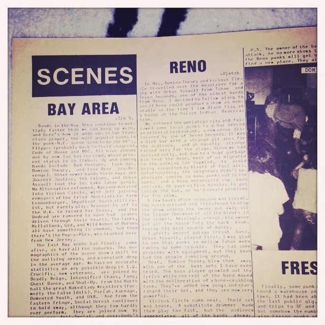 Columns: Op-eds from the folks running this thing. Peter Urban notes that the SF scene has long been political and gives a history lesson on the subject. Again, some strong and repeating themes in this one. Band Interviews: QAs with the folks making all this noise. This issue talks to MDC (and gives a lot of space to reprinting their lyrics - blunt, political, driving in a non-bonehead visions of punk), Minor Threat (a touring band! This was early enough in the making of the HC touring circuit that the regional differences in local scenes was a huge novelty and they spend some time comparing regional dance moves before moving on to "Straight Edge").